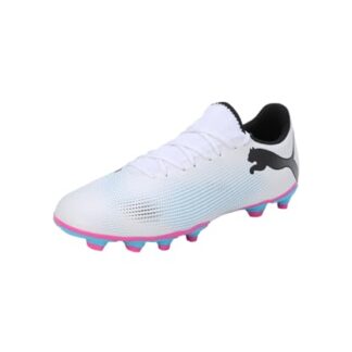 Puma Men Future 7 Play Fg/Ag Soccer Shoes, Puma White-Puma Black-Poison Pink, 43 EU
