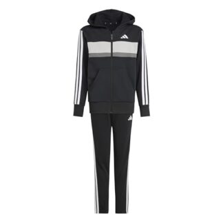 adidas Unisex – Bambini e ragazzi SEASONAL ESSENTIALS TIBERIO 3 STRIPES FLEECE TRACKSUIT, black/white/grey two, 15-16 Years