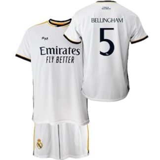 Real Madrid Conjunto Niño Camiseta y Pantalón Primera Equipación de la Temporada 2023-2024 – Bellingham 5 – Replica Oficial con Licencia Oficial – Niño (14 Años)