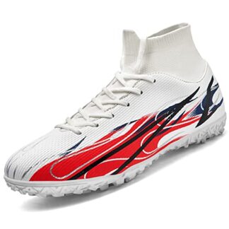 Unitysow Zapatillas de Fútbol Hombre Profesionales Botas de Fútbol Tacos Aire Libre Sala Atletismo Entrenamiento Zapatillas de Deportivas Turf Zapatos de Fútbol,Blanco,45 EU